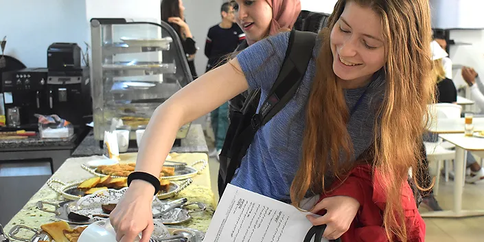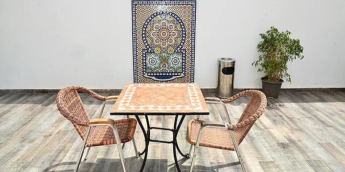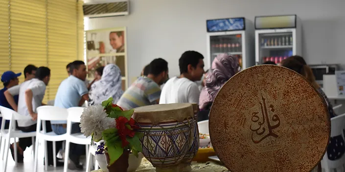 Qalam Café and Restaurant* offer meals and snacks throughout the day. With assortments of Moroccan breads for breakfast and a traditional Moroccan dish of the day for lunch, the cafeteria and adjoining terrace are a perfect place for students to relax and grab something to eat. The café is serves snacks and drinks all day long, keeping students energized through a coffee or tea break, Moroccan pastries, or assortment of mixed fruit juices!